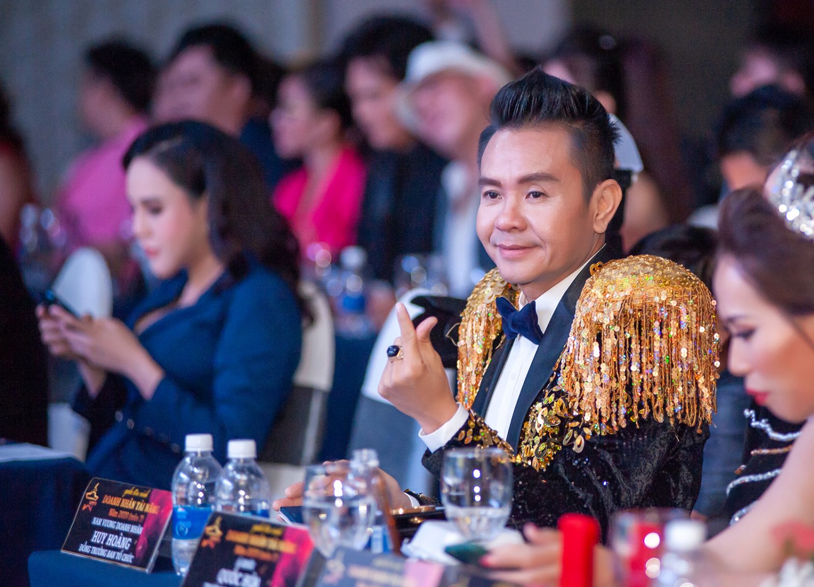 Từ trái qua: Tổng đạo diễn Nguyễn Minh, Nhà báo Trung Hoàng, Nam vương Huy Hoàng, Hội đồng nghệ thuật quán quân Quốc Kháng