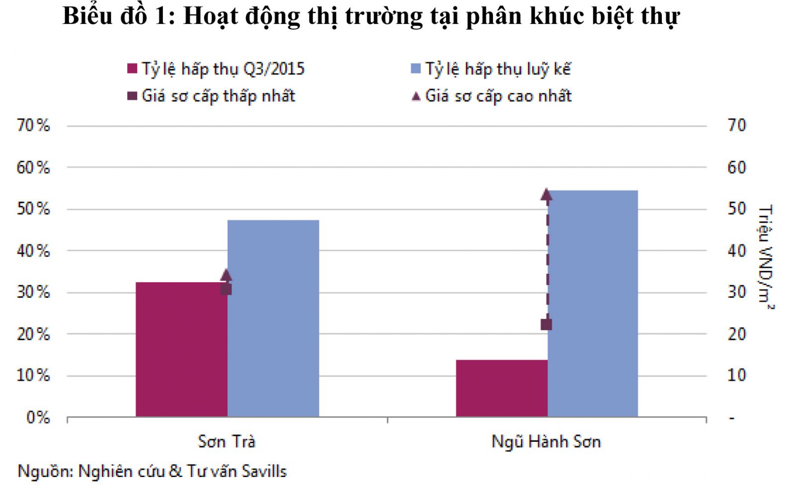 Theo Savills Việt Nam, trong quý III/2015, nguồn cung biệt thự tại Đà Nẵng đạt 1.200 căn từ 17 dự án, với 146 căn bổ sung từ dự án Euro Village. Trong khi đó, nguồn cung sơ cấp tăng 50% theo quý, đạt 725 căn từ 11 dự án; nguồn cung thứ cấp tăng 50 căn, đạt 474 căn từ 16 dự án. Cũng trong quý này, dự án Vinpearl Đà Nẵng mở bán giai đoạn II với 150 căn (Biểu đồ 1).