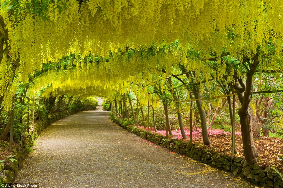 Khách thăm kéo đến Bodnant Gardens để xem những vòm hoa kim tước nở rộ, được tạo ra trong thời kỳ Victoria.