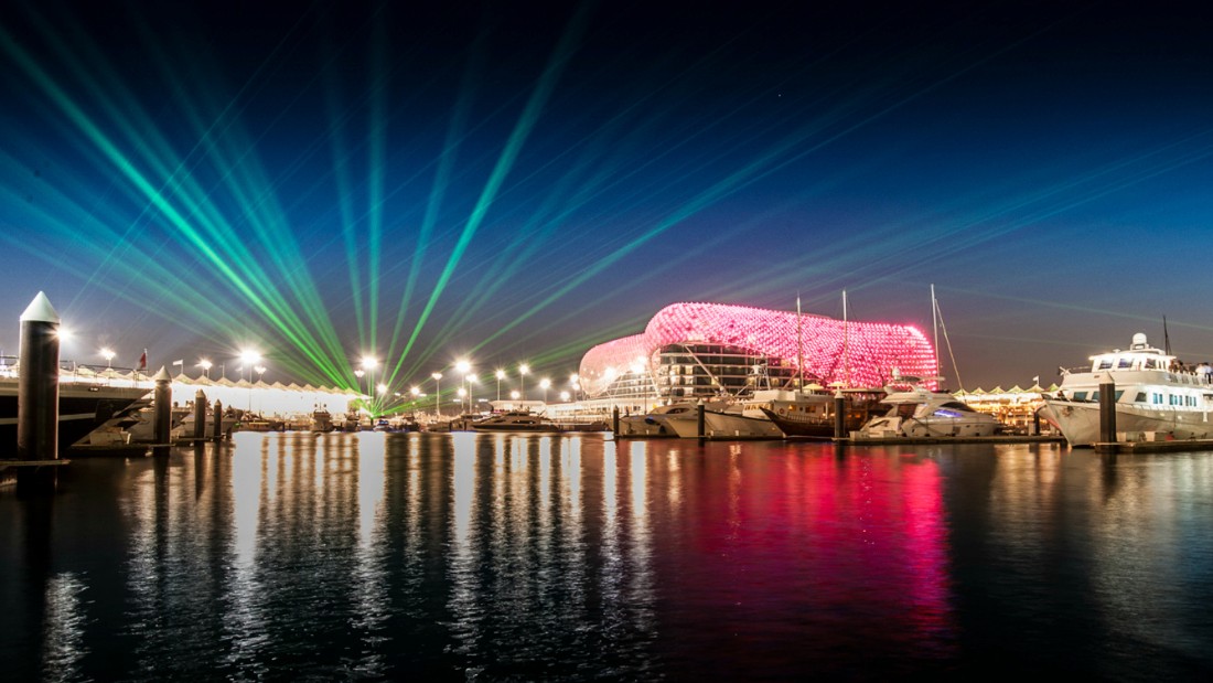Light shows at Yas Marina (Trình diễn ánh sáng) - Sau khi thưởng thức các tay đua, du khách có thể đi xuống bến du thuyền gần đó – dưới đây là các bar nổi tiếng và các du thuyền sang trọng - để xem các màn trình diễn ánh sáng đầy màu sắc rực rỡ trên nền bầu trời đêm.