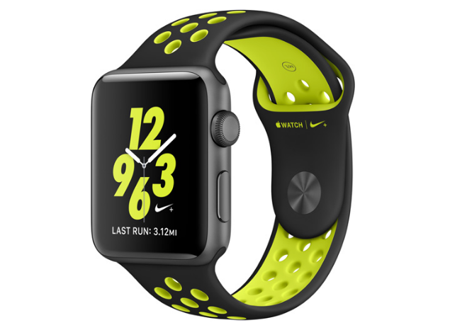 Nike + biến thể của Watch có cấu trúc giống như Apple Watch Series 2, nhưng có dây đeo đục lỗ rất đặc biệt, kết hợp bốn màu sắc độc đáo và có duy nhất mặt đồng hồ Nike.