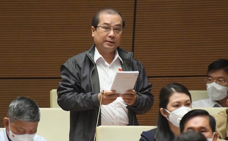 | ĐBQH Trình Lam Sinh (An Giang), chất vấn, đề nghị Bộ Lao động, Thương binh và Xã hội cho biết những chính sách hỗ trợ cho người lao động trở về quê, để họ không bị bỏ lại phía sau. Ảnh: QH |