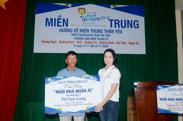 Á hậu Việt Nam Trịnh Kim Chi cho biết số tiền ủng hộ và quà tặng là đóng góp trong đêm thiện nguyện và các nhà hảo tâm với mong muốn gửi tấm lòng, chia sẻ khó khăn tới đồng bào các tỉnh miền Trung sớm vượt qua hoàn cảnh khắc nghiệt của bão lũ. Thời gian tới, NSƯT Trịnh Kim Chi sẽ tiếp tục chương trình thiện nguyện sau lũ, chung tay cùng miền Trung xây dựng nhà chống lũ, ổn định cuộc sống và sinh kế vững bền.