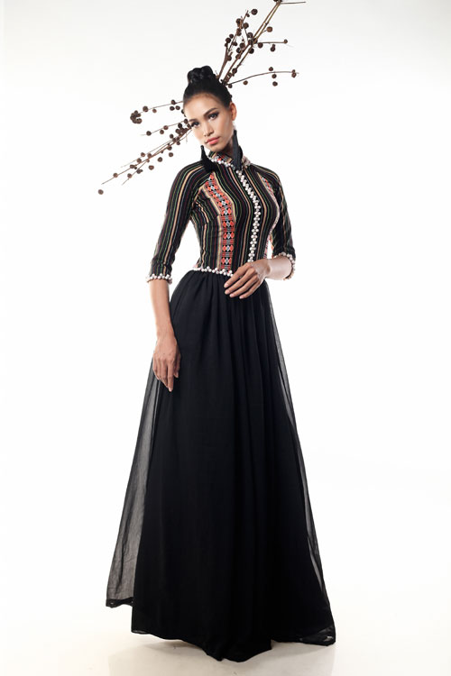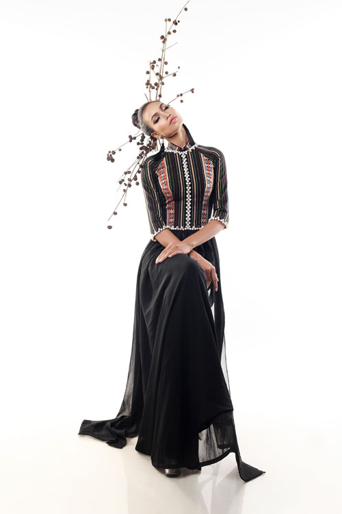 50 bộ Áo dài thổ cẩm trong BST mới của NTK Việt Hùng được trình diễn trong đêm 28/4 tới đây, trên cổ áo, ngực áo, tay áo…là những hạt đá quý đến từ thương hiệu Đá quý Đức Tiến được đính kết bằng bàn tay thủ công khéo léo và trang trọng, càng làm tăng thêm giá trị cho chiếc áo.