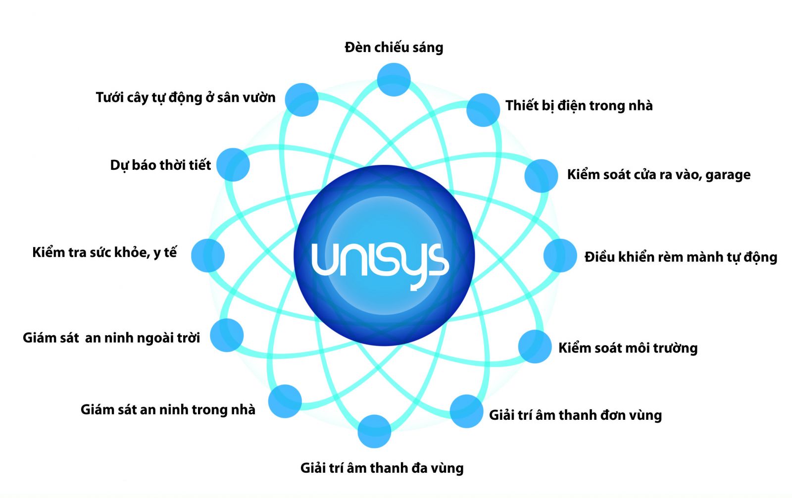Cũng theo bà Hoa, chỉ trong một thời gian ngắn kể từ khi Unisys có mặt tại Việt Nam, hiện Công ty đã và đang thi công khá nhiều gói SmartHome cho các căn hộ cao cấp và các biệt thự riêng biệt. Hệ thống phần mềm phát triển theo công nghệ của Đức được tích hợp đa chức năng All in One, kiểm soát: hệ thống đèn chiếu sáng, thiết bị điện trong nhà; hệ thống kiểm soát cửa ra vào, điều khiển rèm mành tự động; hệ thống kiểm soát môi trường. Sản phẩm còn tích hợp hệ thống âm thanh đơn và đa vùng; hệ thống giám sát an ninh, chống trộm, kiểm tra sức khỏe, y tế cho các thành viên trong gia đình và dự báo thời tiết.