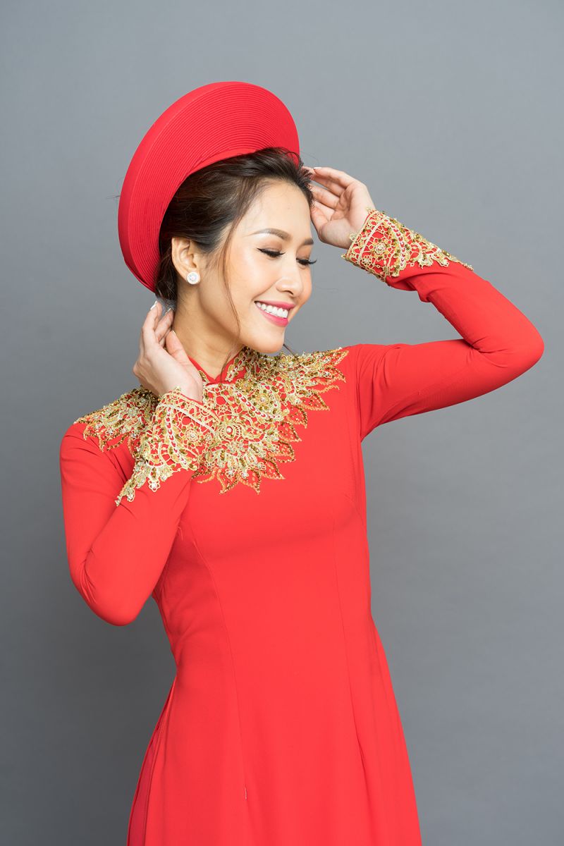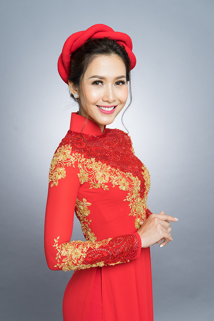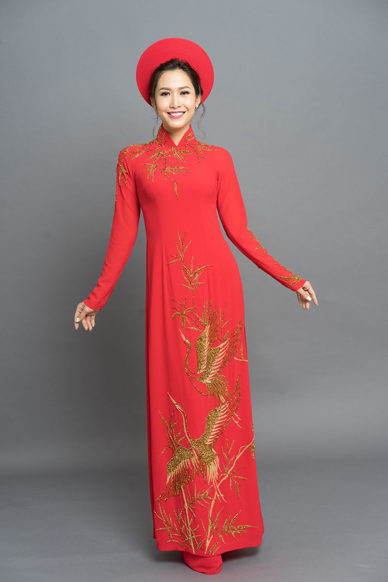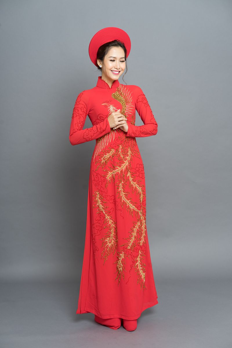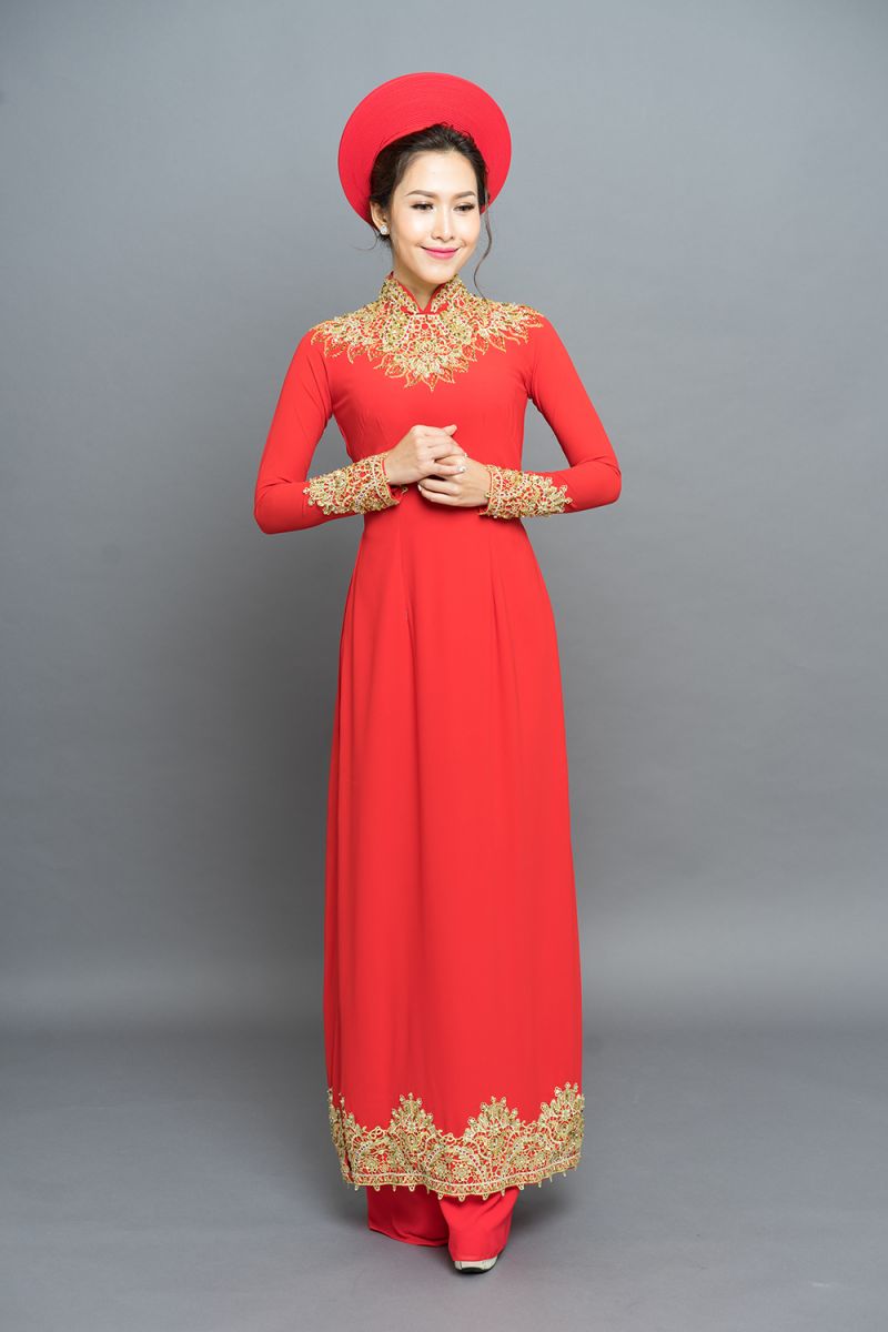 Số đông hiện nay có sở thích chọn áo dài phá cách hiện đại với nhiều chất liệu ren khoe da, hở ngực... riêng người đẹp Phan Thu Quyên chọn cho mình mẫu áo dài truyền thống với màu đỏ đặc trưng của áo dài cưới dành cho cô dâu Việt.