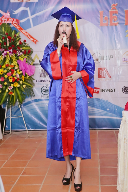 Sau 4 tháng học hành tử tế, Phi Thanh Vân hãnh diện khoác trên mình bộ lễ phục để nhận bằng của lớp học CEO - 33 từ thầy Triệu Văn Hoan đang là giảng viên của trường.
