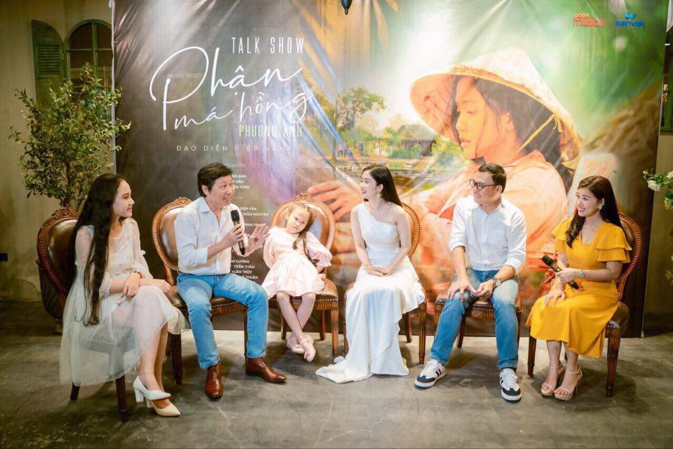 Ca sĩ Phương Anh Bolero (ở giữa) thích thú trước những chia sẻ của bạn diễn về quá trình làm MV Phận má hồng tại buổi talkshow