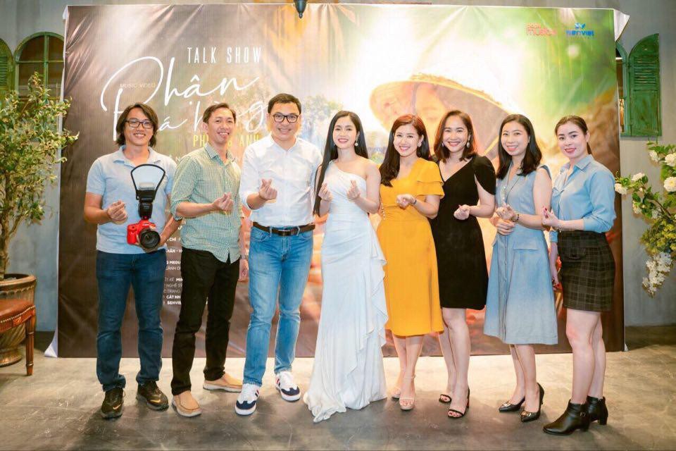 Dàn ekip thực hiện sản xuất Phận má hồng chụp ảnh lưu niệm trong buổi talkshow ra mắt MV mới