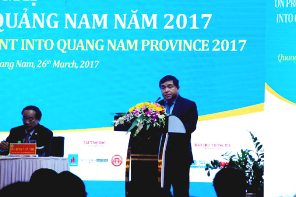 Bộ trưởng Bộ Kế hoạch và Đầu tư Nguyễn Chí Dũng phát biểu tại Hội nghị Xúc tiến đầu tư tỉnh Quảng Nam 2017