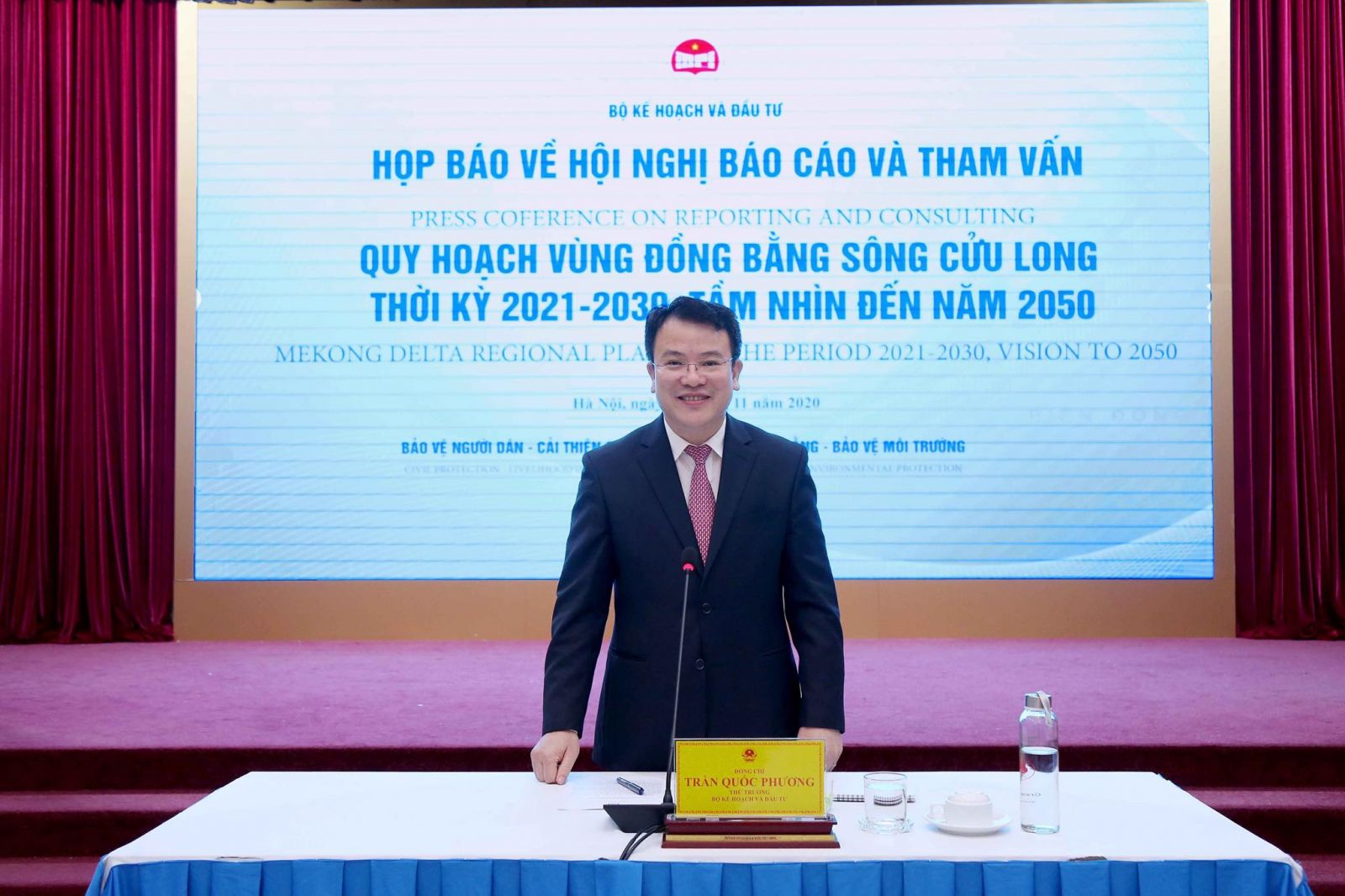 Thứ trưởng Bộ Kế hoạch và Đầu tư Trần Quốc Phương đã cho biết điều này tại buổi họp báo về Hội nghị báo cáo và tham vấn về Quy hoạch vùng Đồng bằng sông Cửu Long (ĐBSCL) thời kỳ 2021-2030, tầm nhìn 2050, diễn ra chiều tối ngày 23/11 tại Hà Nội.