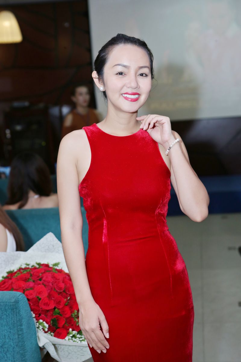 Amy Lê Anh quyến rũ với làn da trắng khi diện đầm nhung đỏ rực. Sau khi đoạt giải Hoa hậu tại Pháp, cô được chú ý nhiều hơn với vai trò nữ giám đốc công ty giải trí truyền thông quốc tế.