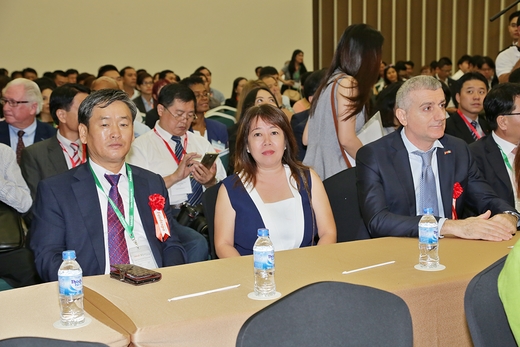 Ông Hong, Min-Hei cùng bà Quỳnh Châu trên hàng ghế đại biểu trong giờ khai mạc được diễn ra sáng nay tại Hội chợ triển lãm quận 7.
