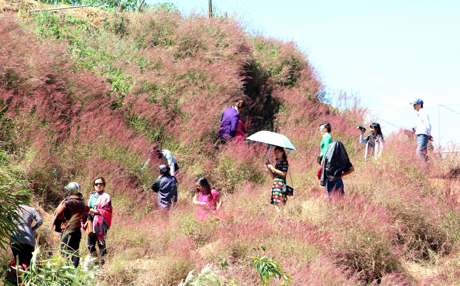 Khi mặt trời lên, cỏ bắt đầu chuyển sang màu tím hồng nhẹ, đủ để quyến rũ và níu kéo những bước chân khó tính nhất. Tiết trời đầu đông se lạnh thích hợp cho cỏ hồng mọc nhiều trong thung lũng, ven hồ, bên sườn đồi như Trại Mát, Suối Vàng, làng hoa Thái Phiên.