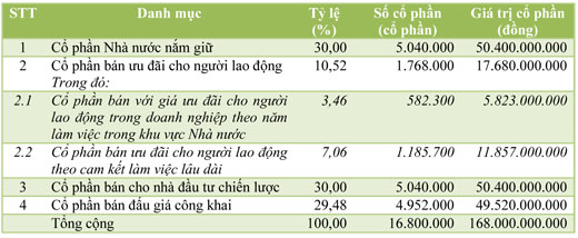 Bảng cơ cấu vốn điều lệ của Bệnh viện Giao thông vận tải Trung ương sau cổ phần hóa