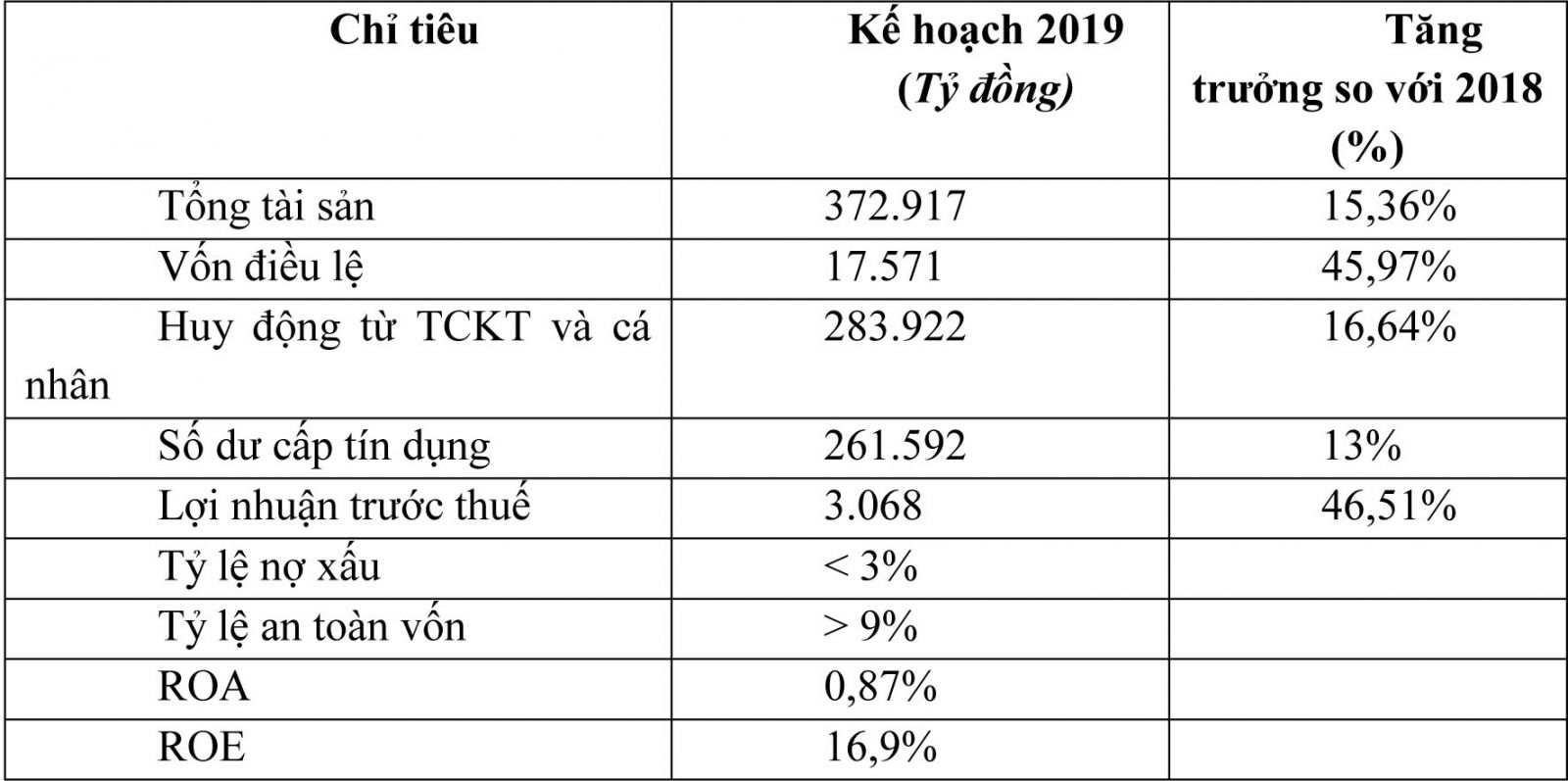 Với nền tảng hoạt động bền vững, ổn định, SHB đã đề ra kế hoạch kinh doanh 2019 và được ĐHĐCĐ thông qua như sau: