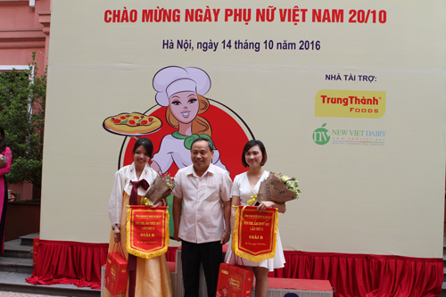 Đại diện Công đoàn và Đảng ủy trao giải Ba cho các đội