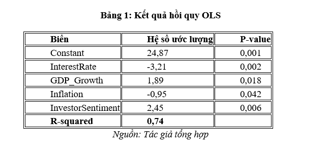 Kết quả hồi quy OLS với các biến và hệ số ước lượng thể hiện tại Bảng 1.