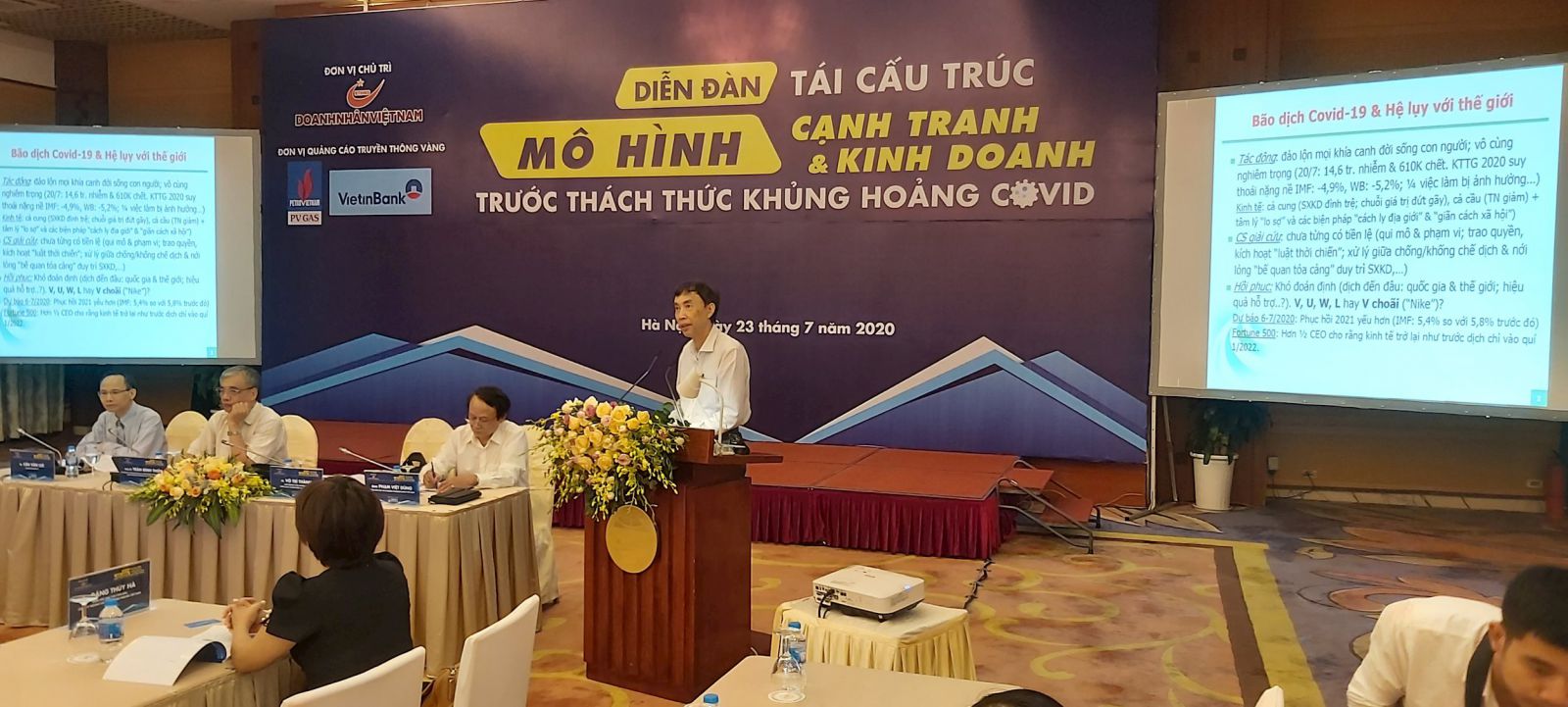 Cũng tại Diễn đàn, TS. Võ Trí Thành, Viện trưởng Viện nghiên cứu Chiến lược thương hiệu và Cạnh tranh chia sẻ, đại dịch Covid-19 đã đảo lộn mọi khía cạnh đời sống con người, tác động đến hầu hết các lĩnh vực, ngành nghề sản xuất, kinh doanh. Theo khảo sát, trong số 126.000 doanh nghiệp, có tới 86% chịu những tác động ảnh hưởng đáng kể.