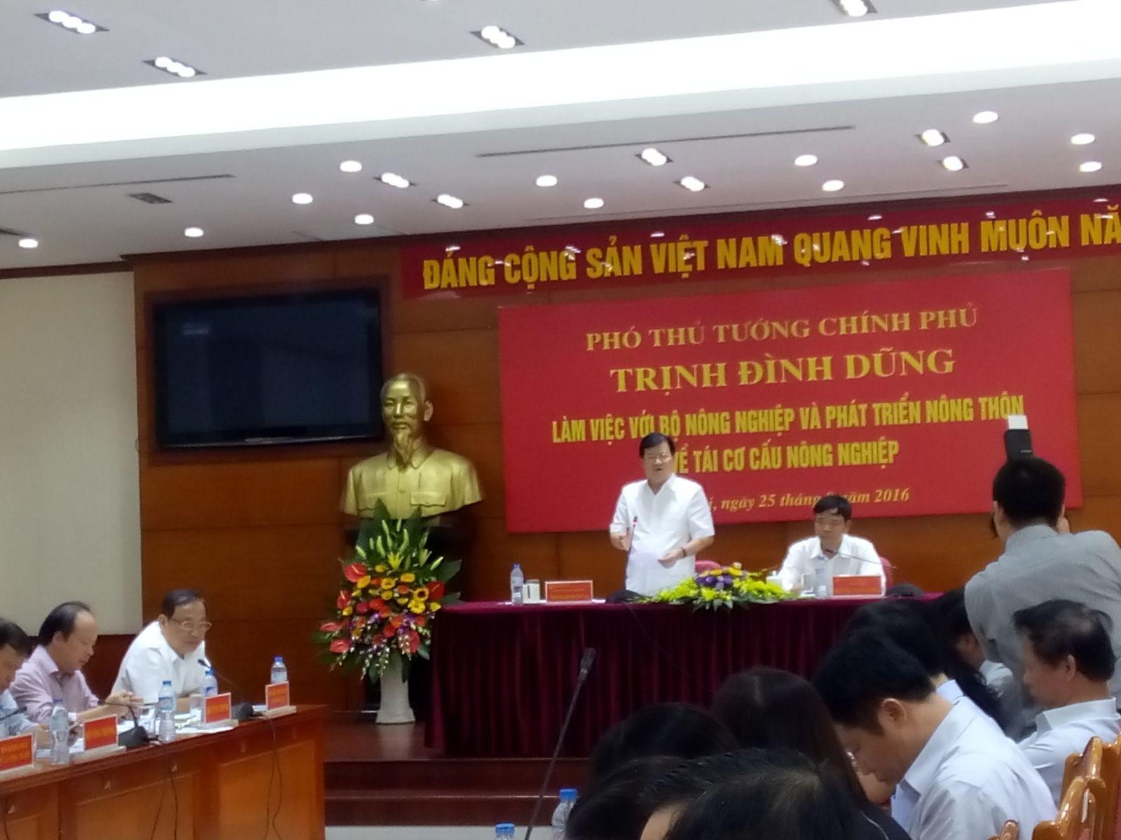 Phát biểu kết luận buổi làm việc, Phó thủ tướng Trịnh Đình Dũng nhận xét, cơ cấu sản xuất nông nghiệp đã có chuyển biến, tăng sản phẩm có giá trị cao, tăng sức cạnh tranh trên thị trường. Liên kết trong sản xuất nông nghiệp tiếp tục được hình thành, xuất hiện một số mô hình sản xuất có hiệu quả ở các địa phương.