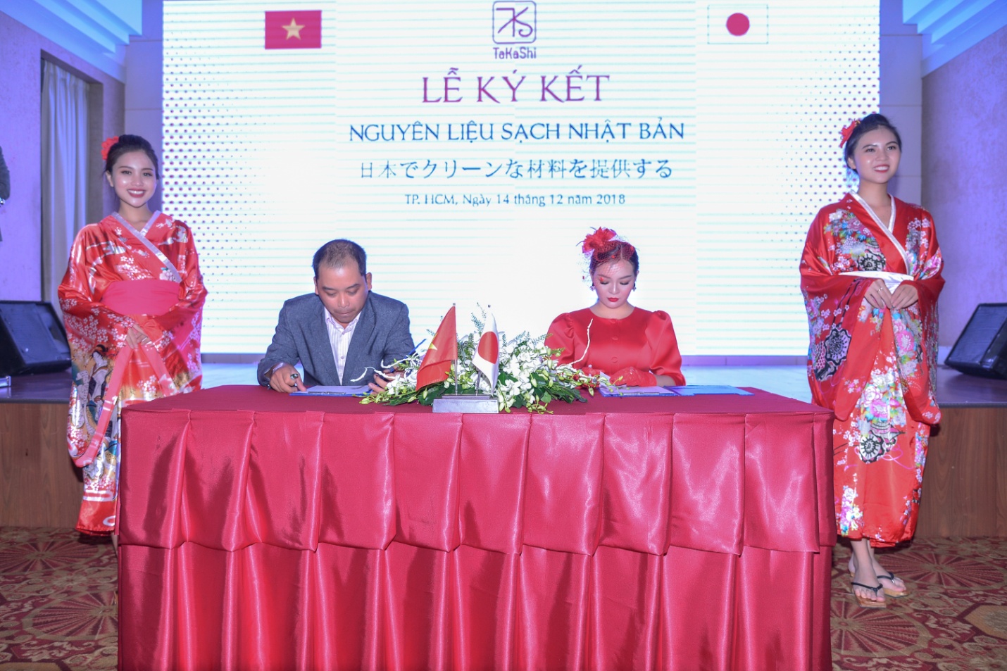 Cũng trong buổi lễ ra mắt thương hiệu Takashi, Đại diện nhà cung cấp nguyên liệu Nhật Bản – giám đốc sản xuất Nguyễn Hoàng Quốc Phong và Á hậu Nguyễn Thái Ngân đã cùng nhau ký kết hợp tác cung cấp nguyên liệu Nhật trong thời gian sắp tới, đánh dấu thương hiệu Takashi chính thức đổ bộ thị trường Việt Nam.