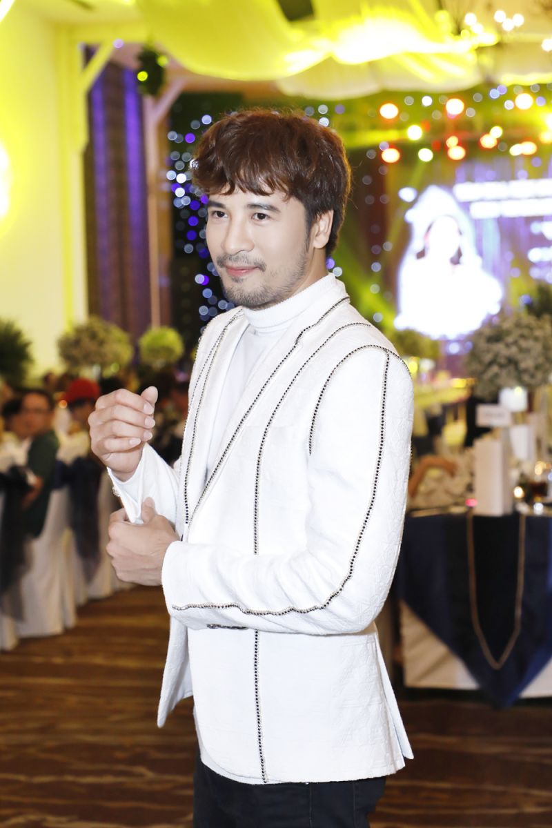Ca sỹ Nguyên Vũ xuất hiện bảnh bao với veston đính đá nổi bật gây chú ý tại sự kiện. Anh cũng là người giúp đỡ rất nhiều cho chủ nhân buổi tiệc trong suốt thời gian qua.