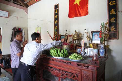 Tổng biên tập Lê Xuân ĐÌnh dâng hương liệt sỹ Nguyễn Văn Vượng