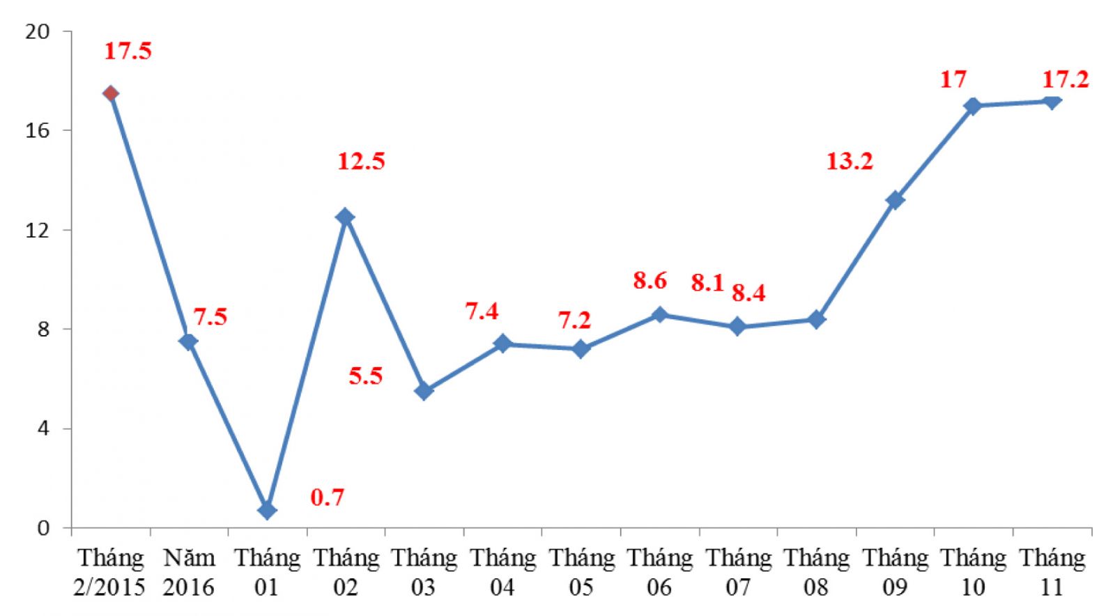 | Biểu đồ: IIP năm 2016 và 11 tháng đầu năm 2017 |