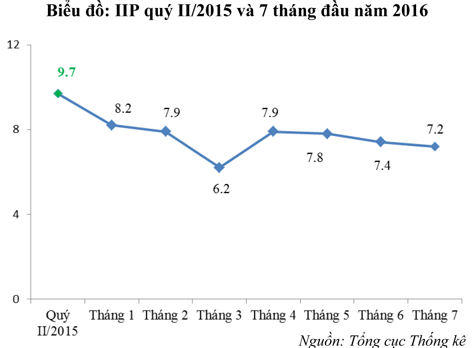 Tháng 7/2016: IIP chỉ tăng 7,2%