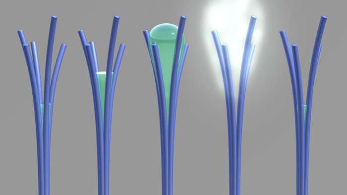 Nghiên cứu gần đây ở PNNL dường như là lần đầu tiên họ trực tiếp thấy hiện tượng này diễn ra. Giả thuyết của nhóm nghiên cứu là nước được ngưng tụ và kéo ra các chi nhánh của các thanh nano cùng với nhau, và khi đạt đến ngưỡng 1,5 nm thì nước nhanh chóng bốc hơi.