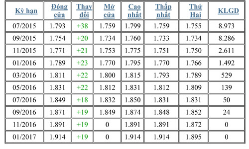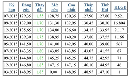 Hợp đồng mở trên kỳ hạn giao tháng 07/2015 chỉ còn 27.111 hợp đồng trong khi hợp đồng mở trên kỳ hạn giao tháng 09/2015 tăng lên 86.950 hợp đồng.