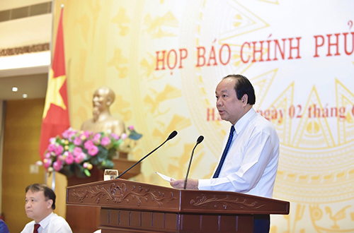 Bộ trưởng, Chủ nhiệm Văn phòng Chính phủ phát biểu tại buổi họp báo Chính phủ thường kỳ tháng 5/2018