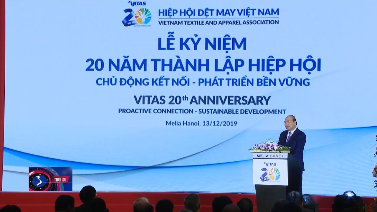 Phát biểu tại buổi lễ, Thủ tướng Nguyễn Xuân Phúc cho biết, năm 2019 đánh dấu 20 năm thành lập VITAS. Trong suốt chặng đường 20 năm qua, VITAS đã cùng các đơn vị hội viên và các doanh nghiệp trong ngành nỗ lực phấn đấu vượt qua nhiều khó khăn, thách thức, góp phần quan trọng vào sự phát triển mạnh mẽ của dệt may Việt Nam cũng như đóng góp cho sự phồn thịnh của đất nước. Ngành dệt may đã đóng tích cực cho giải quyết việc làm, không chỉ ở khu vực thành phố mà cả những vùng khó khăn, qua đó giảm lao động trong lĩnh vực nông nghiệp, chuyển dịch cơ cấu kinh tế. Đặc biệt, ngành dệt may còn đóng góp quan trọng vào xuất khẩu cả nước. Năm 2019, kim ngạch xuất khẩu của ngành dệt may đạt 39 tỷ USD, tăng 106 lần so với cách đây 20 năm; là ngành sử dụng nhiều lao động nhất cả nước với 3 triệu lao động, chiếm 1/4 số lao động toàn ngành công nghiệp.