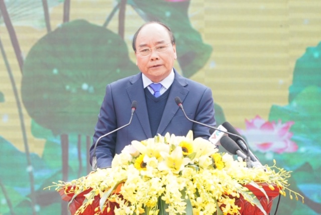 Phát biểu tại buổi lễ, Thủ tướng điểm lại một số nét chính về kết quả xây dựng nông thôn mới trong cả nước thời gian qua, với 54,7% số xã đạt chuẩn nông thôn mới, vượt mức trước 2 năm so với Nghị quyết của Đảng và Quốc hội giao. Chúng ta đã có 113 số huyện trong cả nước đạt chuẩn nông thôn mới. Vì thế, bộ mặt nông thôn của nước ta khang trang, xanh sạch đẹp, giàu có hơn. Sản xuất nông nghiệp được tái cơ cấu mạnh mẽ, tiếp tục phát triển nhiều mô hình liên kết sản xuất, ứng dụng tiến bộ khoa học công nghệ, đem lại hiệu quả kinh tế cao. Số hộ nghèo trong cả nước giảm nhanh.