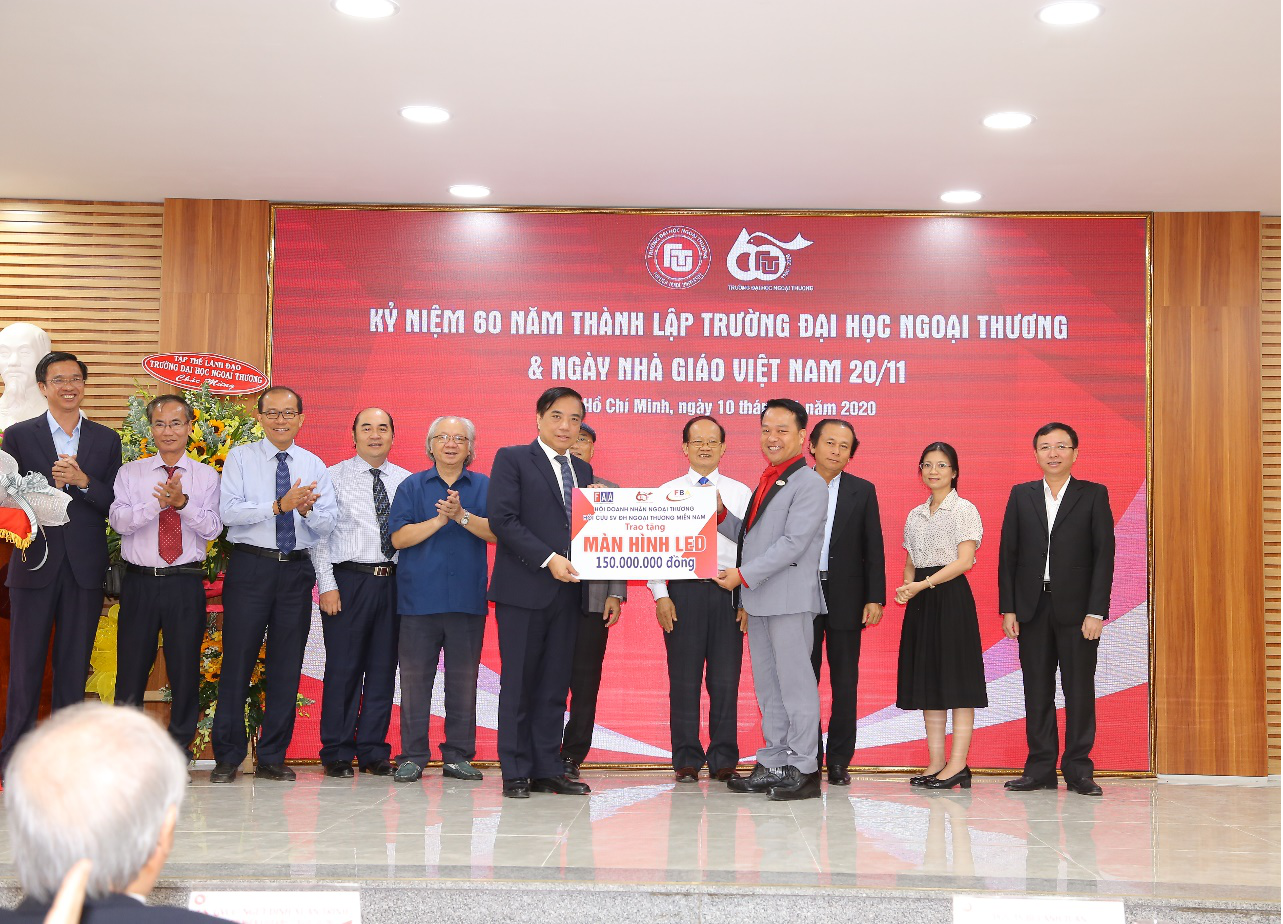 Nhân dịp đặc biệt này, Ông Trần Hữu Đoàn - Phó chủ tịch thường trực Hội Doanh nhân Ngoại Thương, đại diện cho cựu sinh viên trường đại học Ngoại Thương đã phát biểu chúc mừng và gửi tặng Cơ sở II nhân dịp 60 năm – màn hình led trị giá 150 triệu đồng thay lời cảm ơn và tri ân đến Ban lãnh đạo cùng tập thể viên chức Nhà trường.