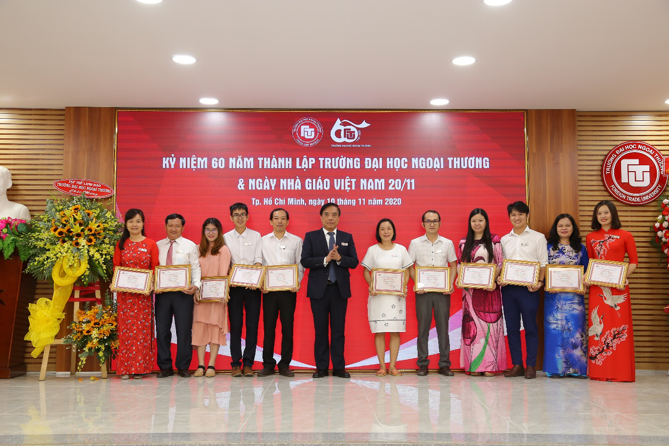 Trong buổi Lễ kỷ niệm, Cơ sở II trình chiếu clip tuyên dương những tấm gương viên chức, người học, cựu người học tiêu biểu đã có những đóng góp cho Cơ sở II nói riêng và trường Đại học Ngoại thương trong suốt thời gian qua cũng như động viên, khích lệ các viên chức tiếp tục phấn đấu trong công tác. Đồng thời, nhằm tôn vinh, tri ân những đóng góp của tập thể viên chức Cơ sở II trong công tác giáo dục, Thầy Hiệu trưởng đã tuyên dương và trao giấy khen cho viên chức Cơ sở II đạt danh hiệu Chiến sĩ thi đua năm học 2019-2020 và Giám đốc Nguyễn Xuân Minh đã trao tặng Giấy chứng nhận cho Nhà giáo trẻ - Viên chức trẻ tiêu biểu cấp cơ sở năm học 2019-2020.