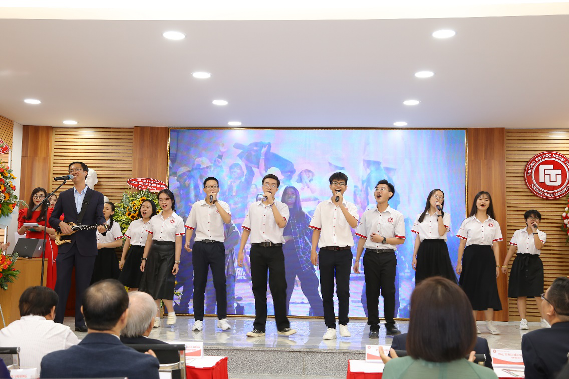 Liên khúc hát về Trường Đại học Ngoại thương: Hành khúc Đại học Ngoại thương (tác giả: Trần Quốc Điền) - Ngoại thương 60 năm khúc hát tự hào (tác giả: Lê Xuân Bắc) giao lưu giữa giảng viên, cựu sinh viên và các em sinh viên