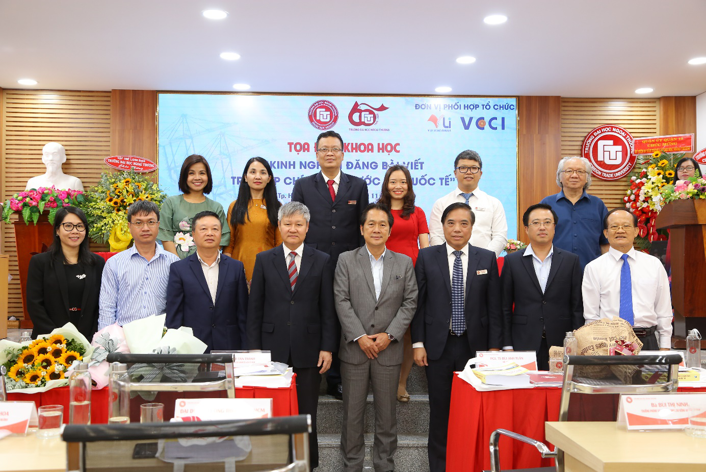 Lãnh đạo Nhà trường chụp hình lưu niệm cùng quý đại biểu tham dự Hội thảo Khoa học Quốc gia năm 2020 tại Cơ sở II