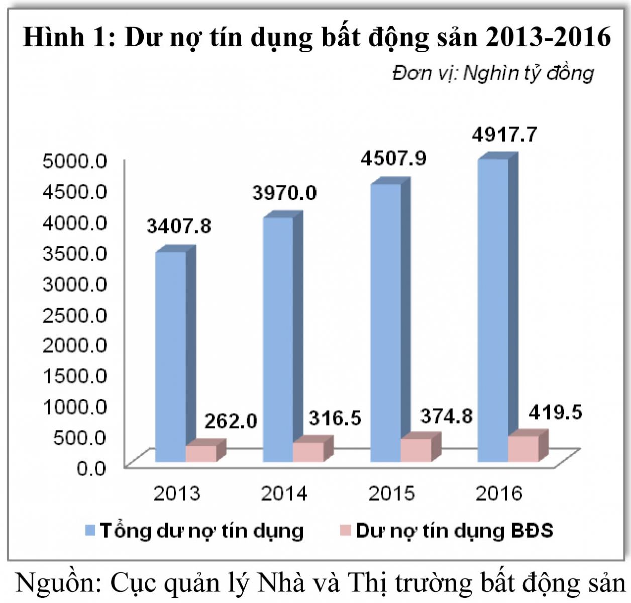 Bước vào năm 2014, tăng trưởng tín dụng đạt mức 16,5%, sau đó năm 2015 là 13,5% và 3 quý đầu năm 2016 là 9,1%. Tương tự, tín dụng BĐS có mức tăng trưởng tương ứng là 20%, 18% và 12%. Theo ước tính của các chuyên gia thì tăng trưởng tín dụng năm 2016 cũng đạt ít nhất tương đương như năm 2015 (khoảng 13%-14%) và tín dụng BĐS năm 2016 cũng đạt ở mức khoảng 16% (Hình 1).
