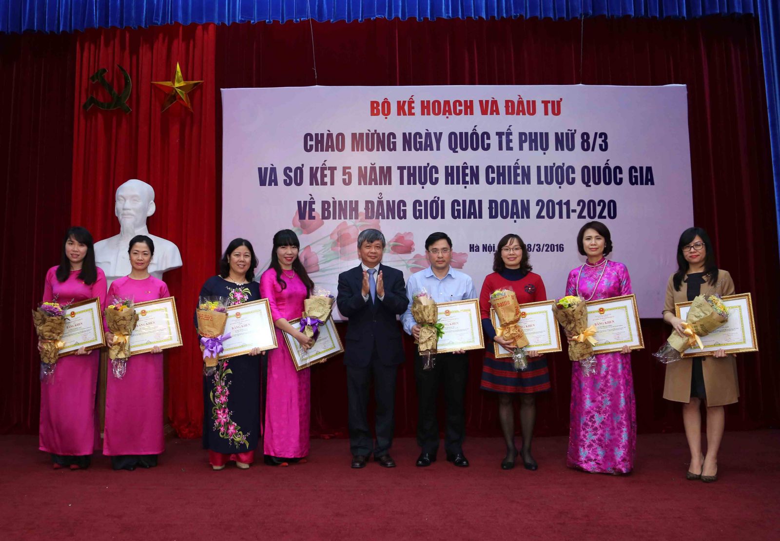 Các cán bộ nữ được trao tặng Bằng khen của Bộ trưởng Bộ Kế hoạch và Đầu tư vì có thành tích trong thực hiện Chiến lược quốc gia về bình đẳng giới