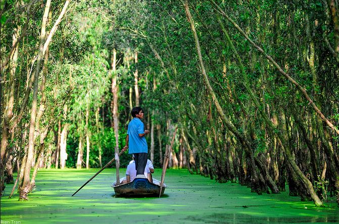 2. Rừng tràm Trà Sư: Rừng tràm Trà Sư thuộc huyện Tịnh Biên, có diện tích khoảng 850 ha với hệ sinh thái phong phú, là biểu trưng cho vẻ đẹp mùa nước nổi An Giang. Trải nghiệm đi thuyền giữa thảm bèo xanh ngút ngàn, len lỏi trong các ngóc ngách của rừng tràm, nghe tiếng chim chóc đùa giỡn trên tán tràm sẽ rất khó quên.