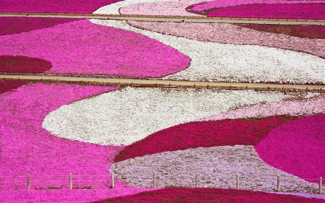 Đồi Shibazakura, rộng 17. 600 mét vuông nằm trong công viên Hitsujiyama, nhìn ra thành phố Chichibu, Nhật Bản. Có khoảng 400.000 cây hoa hồng, 1.000 cây anh đào nở rộ vào giữa tháng 4 và tháng 5.