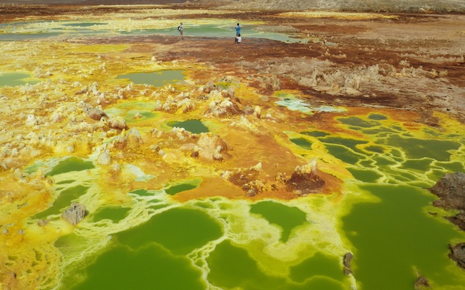 Núi lửa Dallol, Ethiopia, nơi thấp nhất trên Trái Đất, nằm dưới mực nước biển 116m và có nhiệt độ không khí trung bình cao nhất thế giới, 34,4 độ C.