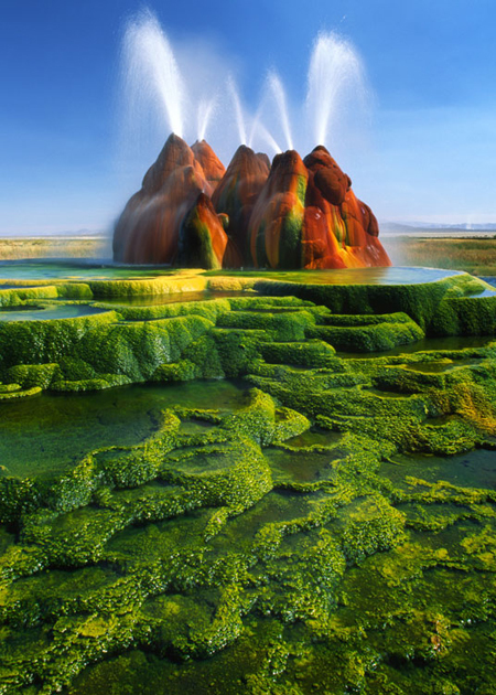 Mạch nước ở Nevada, Mỹ là kết quả của việc khoan thăm dò diễn ra gần đó vào giữa những năm 1960. Màu sắc của nó bắt nguồn từ loài tảo phát triển mạnh ở nhiệt độ cao.