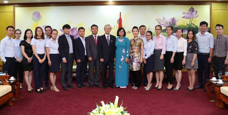 Bà Hoàng Thị Hồng và ông Chung Bong-ik chụp ảnh lưu niệm với các đại biểu