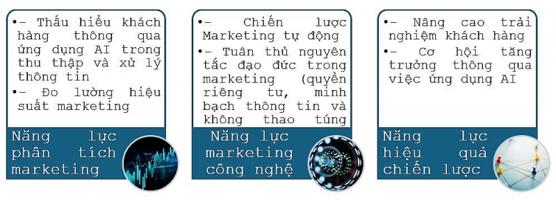 (iii) Năng lực hiệu quả chiến lược: Đánh giá khả năng nâng cao hiệu suất của các hoạt động marketing; đồng thời, phản ánh khả năng phân tích nhanh chóng các tín hiệu từ thị trường, tự động đề xuất điều chỉnh chiến thuật và thậm chí tiên lượng các kịch bản thay đổi có thể xảy ra. Điều này giúp các tổ chức thích ứng linh hoạt, ra quyết định nhanh chóng và định hướng sáng tạo trong bối cảnh thị trường biến động mạnh mẽ như hiện nay.