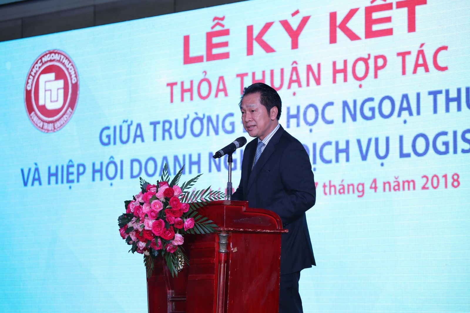 Ông Lê Duy Hiệp – chủ tịch Hiệp hội doanh nghiệp dịch vụ Logistics Việt Nam phát biểu tại Lễ ký kết