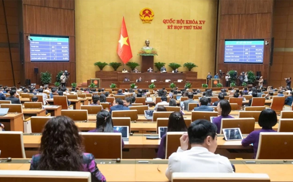 | Kết quả biểu quyết điện tử cho thấy, có 458/461 đại biểu Quốc hội tham gia biểu quyết tán thành, chiếm 95,62% tổng số đại biểu Quốc hội. |