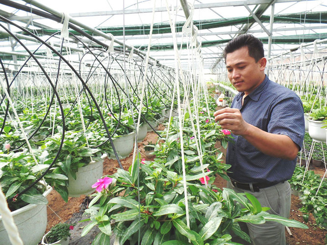 Rời công việc bàn giấy, anh mạnh dạn dốc vốn xây dựng cơ sở đầu tiên khá hiện đại tại H.Củ Chi (TP.HCM). Trên diện tích rộng 1 ha, anh cho gieo trồng gối đầu các loại hoa như: dạ yên thảo, dừa cạn, cát tường, thu hải đường… trong chậu nhựa trắng.