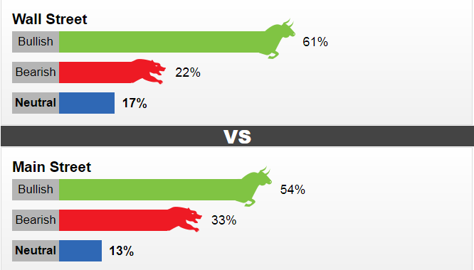 Cụ thể, cuộc khảo sát tại Wall Street cho kết quả, 61% ý kiến cho rằng, giá vàng sẽ tăng, 22% thì dự báo giá sẽ giảm và 17% quan điểm trung lập. Còn tại cuộc khảo sát Main Street, cũng có tới 54% ý kiến trả lời kỳ vọng giá vàng sẽ tăng trong tuần sau, 33% dự báo giá giảm và 13% trung lập.